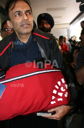 Sunil Anand son of Late Bollywood actor Dev Anand came from London with ash of Dev Aanand Land in India at Mumbai International Airport on Wednesday 14 December 2011. Sunil will go to Nashik for ash Immerssoin. Photo by Sachin Halde/Indian Photo Agency