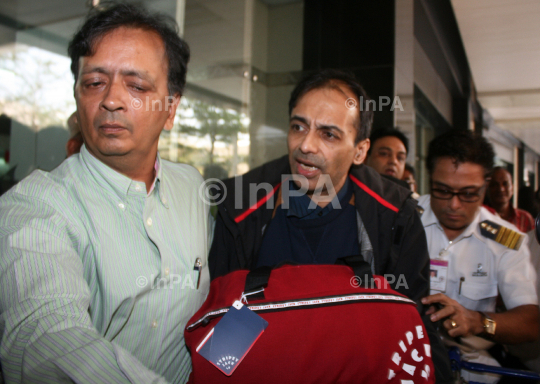 Sunil Anand son of Late Bollywood actor Dev Anand came from London with ash of Dev Aanand Land in India at Mumbai International Airport on Wednesday 14 December 2011. Sunil will go to Nashik for ash Immerssoin. Photo by Sachin Halde/Indian Photo Agency