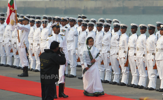 Indian President, Pratibha Devisingh Patil inspecting the Guard of Honour, during the 10th President's Fleet Review (PFR) in Mumbai, on December 20, 2011. A total of 81 ships participated in the event which includes fly past by 44 aircraft from Navy and Coast Guard. Photo by Sachin Halde/Indian Photo Agency