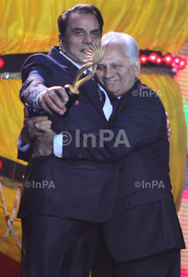 Actor Dharmendra recieves an IIFA award from Ramesh Sippy during the International Indian Film Academy (IIFA) Awards at the Heritage Court, Exhibition Place in Toronto, Canada on 26 June 2011. Photo Credit: Indian Photo Agency