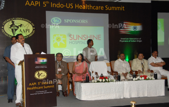 N Kiran Kumar Reddy, Chief Minister of Andhra Pradesh addressing after inaugurating AAPI 5th Indo-US Healthcare Summit at Hotel Taj Krishna in Hyderabad on January 03, 2012. Photo Credit: Indian Photo Agency