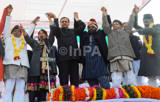 Amar Singh, president, Lok Manch Party with actress and MP Jaya Prada during a rally at Bareilly in Uttar Pradesh on 10/01/2012. Photo Credit: Indian Photo Agency