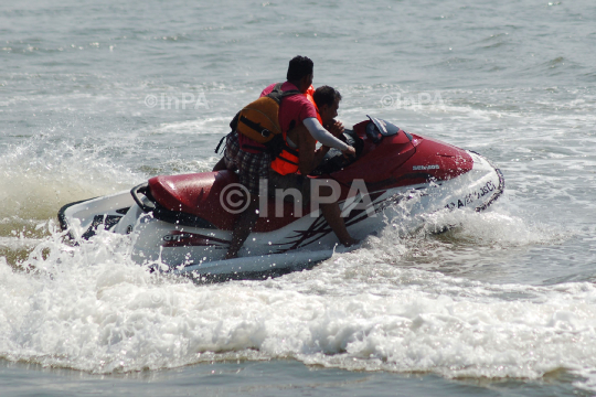 People enjoying water Sports in Adventure Festival as a Part of 17th National Youth Festival at the bank of the River Nethravathi in Jeppinamogaru in Mangalore on Jan 14, 2012. Photo by RK Bhat/Indian Photo Agency