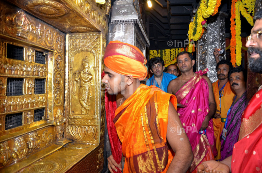 Paryaya Swameeji Making Krishna darshana through Navagraha Kindi during Paryaya festival marking the take over of Pooja rights of Lord Krishna, at Srikrishna Temple, by the Sode Mutt pontiff Vishwavallabha Theertha in Udupi, Karnataka, India on 18/01/2012 . It is the first paryaya for Vishwavallabha Theertha,Of Sode Swamiji. Photo by RK Bhat/Indian Photo Agency
