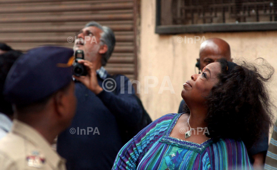 American television talk show actress Oprah Winfrey during interview with Author, writer of novel Shantaram, Gregory David Roberts (Gregory Roberts), near Colaba market in Mumbai on 19/01/2012. Photo by Sachin Halde/Indian Photo Agency