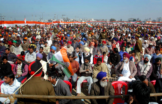 Supporter of Congress party during an election rally to be addressed by Indian Prime Minister Manmohan Singh in Amritsar, India, Saturday, Jan. 21, 2012. Photo Credit: Indian Photo Agency