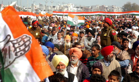 Supporter of Congress party during an election rally to be addressed by Indian Prime Minister Manmohan Singh in Amritsar, India, Saturday, Jan. 21, 2012. Photo Credit: Indian Photo Agency