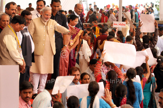 Gujarat's Chief Minister Narendra Modi during his 24th Sadbhavana mission fast at Himmatnagar in Sabarkantha district, Gujarat, India, on January 22, 2012. He announced a package of Rs 2380 crore for Sabarkantha district. Photo Credit: Indian Photo Agency