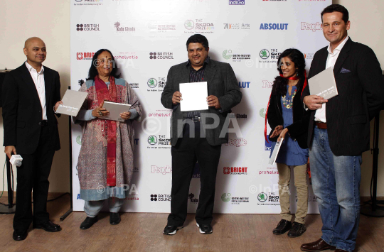 Girish Shahane, Anjolie Ela Menon, Harsha Bhatkal and 70 EMG's CEO Martin da Costa at Indian Contemporary Art exhibition at the Lalit Kala Akademi, New Delhi on January 24, 2012. The SKODA Prize for Indian Contemporary Art celebrated the opening of its Annual Art Exhibition with the artworks of the Twenty artists on the LongList. Photo Credit: Indian Photo Agency