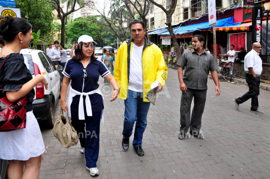 Bollywood actors Farah Khan and Boman Irani during new poster launch of Film 'Shirin Farhad Ki Toh Nikal Padi' in Mumbai, India on July 16, 2012. Photo Credit: Indian Photo Agency