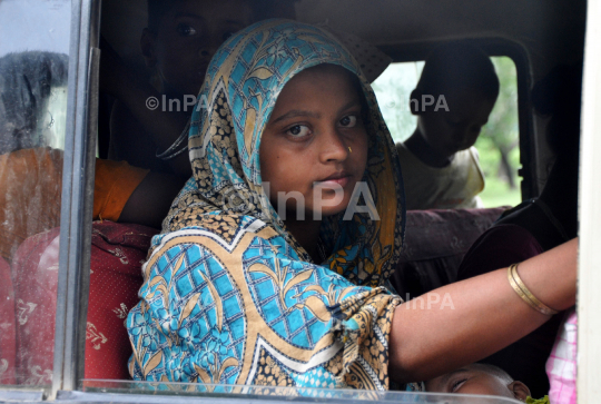 An woman with villagers of Mujabari, Duramari, Juwalamari, Baghbari and other fled from their villages after their houses were burn during the communal riots at Kokrajhar on Tuesday 24th July 2012. 17 people lost their life in the communal riots so far and district administration imposed shoot at sight order during the indefinite curfew. Photo by Dasarath Deka/Indian Photo Agency