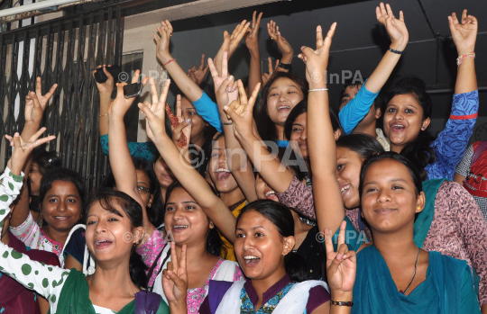 Successful candidates of Higher Secondary Examination celebrate after the High secondary result is declared all over the state today at Cotton College in Guwahati on Monday 4th June 2012. Photo by Dasarath Deka/Indian Photo Agency
