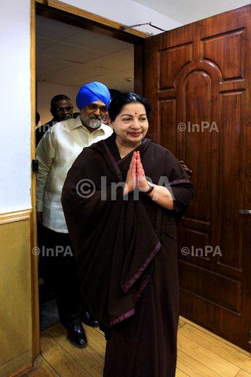 Chief Minister of Tamil Nadu, J Jayalalitha with Deputy Chairman Planning Commission Montek Singh Ahluwalia arrives for a meeting to finalizing plan size for 2012-13 for the State in New Delhi on June 04, 2012. Photo Credit: Indian Photo Agency