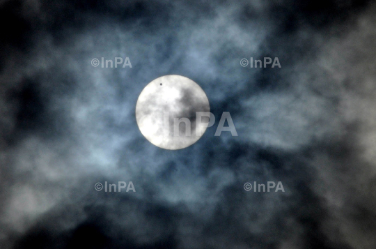 Venus is seen passing in front of the Sun from Guwahati Planetarium in Guwahati on Wednesday 6th June 2012. This is one of the rarest astronomical events occurs today when the planet Venus passes directly between the sun and Earth, a transit that will not occur again until 2117. Photo by Dasarath Deka/Indian Photo Agency
