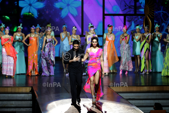 Designer Suneet Verma along with his showstopper Bipasha Basu during 13th IIFA Awards 2012 in Singapore on Friday, 08 June 2012. Photo Credit: Indian Photo Agency