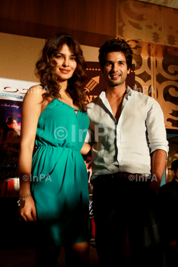 Bollywood actors Shahid Kapoor and Priyanka Chopra during a press conference of their upcoming film "Teri Meri Kahaani" in New Delhi on Saturday, June 16, 2012. Photo by Shweta/Indian Photo Agency