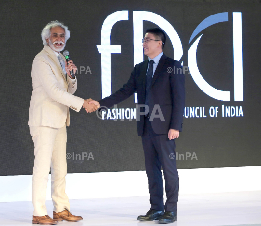 Sunil Sethi, President FDCI and Peter Zhai, President Consumer Business Group Huawei India at the announcement of HUAWEI P9 Launch as the official cameraphone for the Amazon India Fashion Week Spring Summer 2017 in New Delhi, India on August 19, 2016. Photo Credit: Indian Photo Agency (InPA)