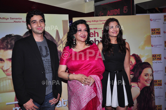 Bollywood actors Aditya Samanta, Moushumi Chatterjee and Nazia Hussain during the music release of film Yeh Jo Mohabbat Hai in Mumbai on Wednesday, 20 June 2012. Photo Credit: Indian Photo Agency