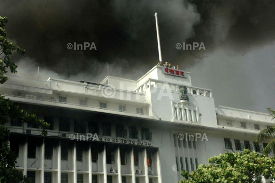 Fire and smoke billows from the headquarters of the Maharashtra state government in Mumbai, India, Thursday, June 21, 2012. Hundreds of employees were evacuated Thursday from the seven-story government building as more than two dozen fire engines battled the major fire that raged for more than three hours in India's financial and entertainment capital. Photo Credit: Indian Photo Agency