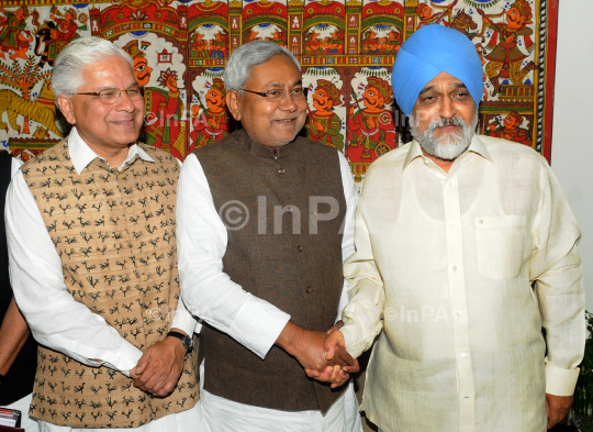 Chief Minister of Bihar, Nitish Kumar meeting the Deputy Chairman, Planning Commission, Montek Singh Ahluwalia, for finalizing plan size for 2012-13 for the State, in New Delhi on June 27, 2012. Minister of State for Planning, Science & Technology and Earth Sciences, Dr Ashwani Kumar is also seen. Photo Credit: Indian Photo Agency
