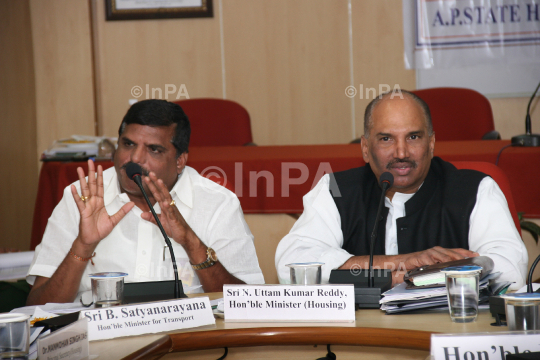 N Uttam Kumar Reddy, Minister for Housing and B Satyanarayana Minister for Transport reviewing meeting on Housing Programme of Vizianagaram District with concerned MPs, Ministers, MLAs, MLCs and other officials at AP State Housing Corporation Ltd, Himayathnagar, Hyderabad on 1st March 2012. Photo Credit: Indian Photo Agency