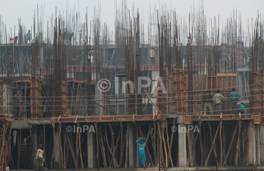 Noida Real Estate: Construction labour at Construction site in Noida, Uttar Pradesh, India. Last year, farmers' protest on land acquisitions prompted the Supreme Court to cancel the construction of residential flats in Noida Extension. Photo Credit: Indian Photo Agency