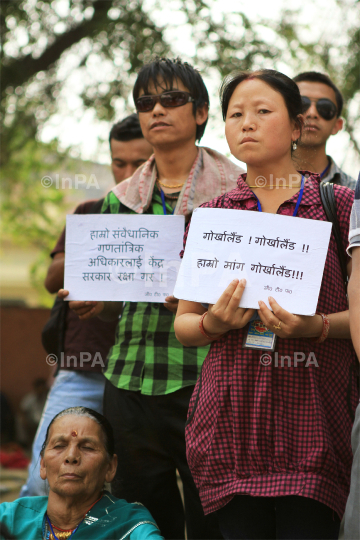Gorkhas during a demonstration for their demand of a separate Gorkhaland organised by Gorkhaland Task Force(GTF), an alliance of political parties and social organisations at Jantar Mantar in New Delhi on March 19, 2012. Photo Credit: Indian Photo Agency