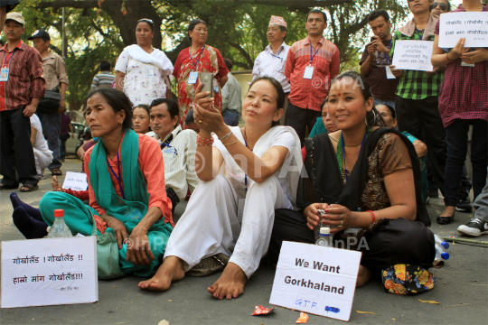 Gorkhas during a demonstration for their demand of a separate Gorkhaland organised by Gorkhaland Task Force(GTF), an alliance of political parties and social organisations at Jantar Mantar in New Delhi on March 19, 2012. Photo Credit: Indian Photo Agency