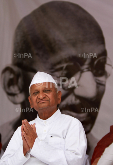 India's anti-corruption activist Anna Hazare during his daylong hunger strike at Jantar Mantar in New Delhi, India, Sunday, March 25, 2012. Hazare is on a daylong hunger strike to protest the killings of a slew of rights activists across the country. Photo Credit: Indian Photo Agency