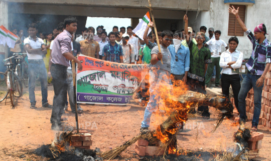 C.P agitation during Demand the home center in front o Gazole collage in Malda . WB .Photo By Pankaj Ghosh-2