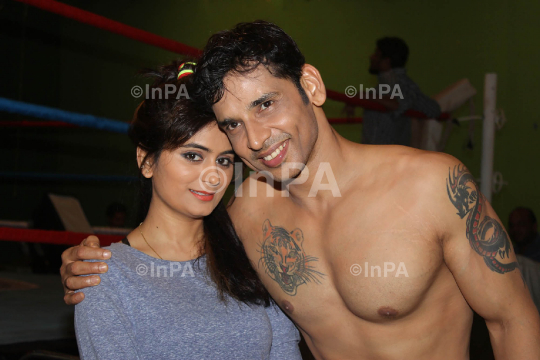 Bhojpuri film actor Sudip Pandey, now all set to make his debut as an actor in Bollywood with the Hindi Feature film 'V for Victor’, poses with Sangh Mitra at a press conference at Pragati Studio in Mumbai, India on July 24, 2016. Film is based on boxing with the back drop of terrorism. Photo Credit: Indian Photo Agency (InPA)