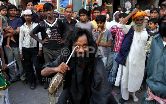 A Sufi Kalandar (wandering ascetic) performs an act of self torture during devotion at the annual Urs (death anniversary) of Sufi saint Khwaja Moinuddin Chishti in Ajmer, Rajasthan, India on May 21, 2012. The Urs is observed to mark the death anniversary of the saint, known for his philosophy on religious tolerance. Photo by Himanshu Sharma/Indian Photo Agency