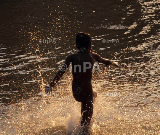 Children dive into Brahmaputra river to beat the heat as mercury level rises in Guwahati, Assam on Monday 14th May 2012. Photo by Luit Chaliha/Indian Photo Agency (InPA)