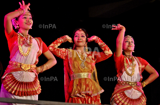 Bharat Natyam dancers perform at Neherubali as a part of Basanta Utsav celebration in Nagaon, Assam on Wednesday night on May 23, 2012. Photo by Anuwar Hazarika/Indian Photo Agency