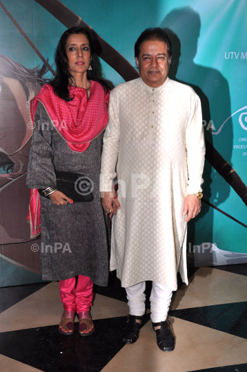 Ghazal singer Anup Jalota with his wife Medha during the special screening of upcoming film "Arjun: The Warrior Prince" in Mumbai, India on May 23, 2012. Photo Credit: Indian Photo Agency
