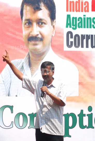 RTI activist and Team Anna core committee member Arvind Kejeriwal delivering speaks during a public meeting at Lakhidhar Borah khetra against the construction of big dams in Guwahati,Assam on Monday 28th may 2012. Photo by Dasarath Deka/Indian Photo Agency