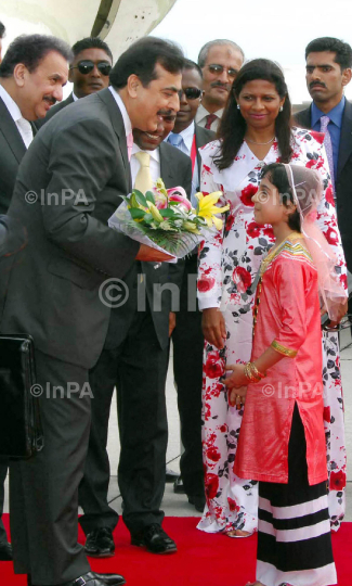 Prime Minister of Pakistan Syed Yusuf Raza Gilani receiving flowers upon his arrival in Addu to attend SAARC Summit, Maldives on 9 November,2011. Photo Credit: Indian Photo Agency