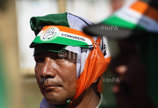 Supporters of Rahul Gandhi, General Secretary of the All India Congress Committee (AICC), unseen, listen to his speech during a public rally at DDSC Stadium, Dimapur, Indiaís north eastern state of Nagaland on Wednesday, November 09, 2011. The Indian youth icon arrives in Nagaland to boost the Indian Youth Congress (IYC) membership drive that kick started in state and also visited the Lumami campus of Nagaland University and interact with the student. Photo by Caisii Mao/Indian Photo Agency
