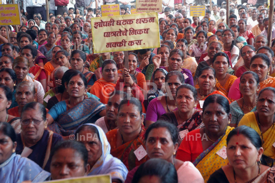 Over 250 project affected people (PAP), including elderly women and children, under the banner of Akhil Pipeline Vikas Samiti, protested at the Azad Maidan against eviction from their houses located along the water pipelines across the state in Mumbai on Thursday, 24/11/2011,. They were demanding a 261 sq.ft. tenement from the government. Photo by Sachin Halde/Indian Photo Agency