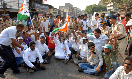 Angry protesters of National Congress Party blocked traffic during a protest against NCP Pressident Sharad Pawar slapped, at Dharavi 90 Feet Road & Kalanagar in Mumbai on 24 November 2011. Photo by Sachin Halde/Indian Photo Agency