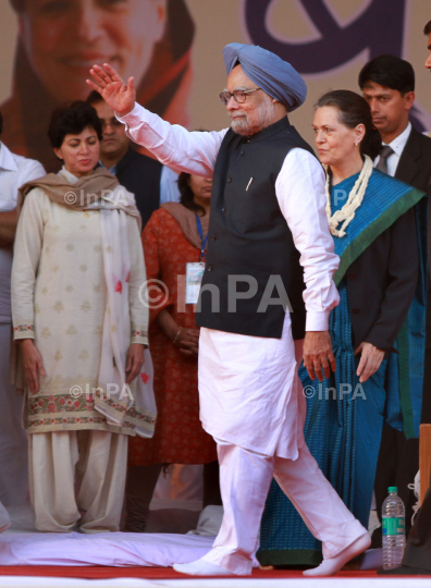 Prime Minister Dr Manmohan Singh with UPA Chairperson Sonia Gandhi during Youth Congress convention "Buniyaad" (Foundation), the party's national level convention of Elected Office Bearers in New Delhi on Monday, November 28, 2011. Photo Credit: Indian Photo Agency