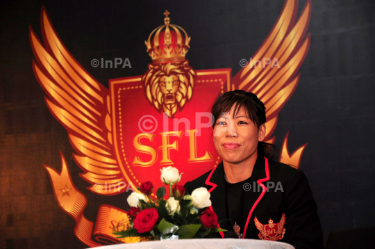 Indian Boxer Mary Kom during the press conference of Super Fight League to announce new project in Mumbai, India on September 24, 2012. Photo Credit: Indian Photo Agency