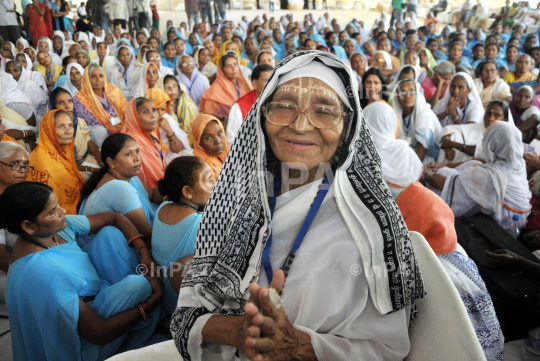 Widows of Vrindavan during a felicitation event by Sulabh International founder Dr Bindeshwari Pathak in New Delhi, India, on September 27, 2012. Photo Credit: Indian Photo Agency