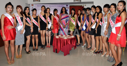Bollywood Actress and Supermodel Monikangana Dutta along with the 16 contestant of Miss Luit 2012 posing for a photograph at a hotel in Guwahati, Assam, India on Thursday night, 27th September 2012. Monikankana will be among the jury member of the contest will be held on 29th September in Guwahati. Photo by Gitika Talukdar/Indian Photo Agency