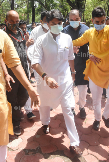 Bhopal: Rajya Sabha member Jyotiraditya Scindia before lunch with BJP state president VD Sharma at his residence in Bhopal, Madhya Pradesh, India on June 09, 2021. Photo By Indian Photo Agency (InPA).