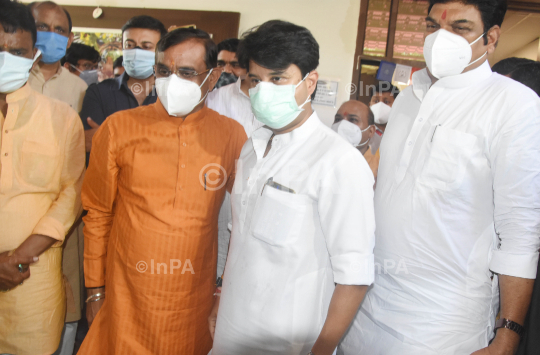 Bhopal: Rajya Sabha member Jyotiraditya Scindia before lunch with BJP state president VD Sharma at his residence in Bhopal, Madhya Pradesh, India on June 09, 2021. Photo By Indian Photo Agency (InPA).