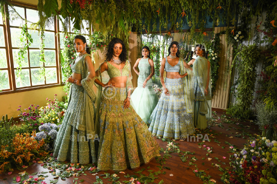 Models wearing fashion designer Reynu Taandon collection as she celebrates Whimsical Surrealism as the theme for her next collection at the FDCI India Couture Week 2021 in New Delhi, India on August 27, 2021. Photo Credit: Indian Photo Agency (InPA)