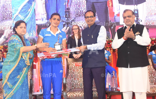 Bhopal: MP CM Shivraj Singh Chouhan honored the players of the Indian women's hockey team of Tokyo Olympics 2020 by giving an incentive of Rs 31-31 lakh at the honor ceremony at Minto Hall today. Bhopal, Madhya Pradesh,india on sipt 28,2021.Photo By Indain Photo Agency(InPA).