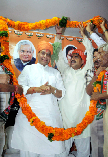 BJP President, Rajnath Singh addressing karyakarta sammelan in Jammu, Jammu and Kashmir, India on Augst 31, 2013. Photo Credit: Indian Photo Agency (InPA)