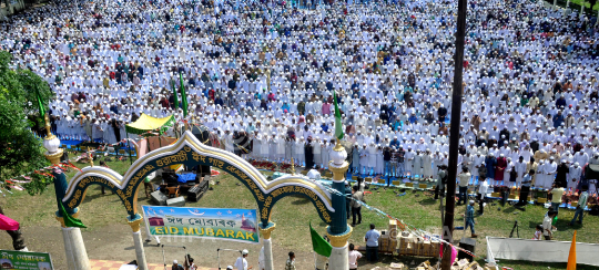 Indian Muslim devotees offer prayers as part of the celebration of Eid-ul –Fitr at Machkhowa Iddgah in Guwahati, Assam, India on Friday 9th August 2013. Photo by Dasarath Deka/Indian Photo Agency (InPA)